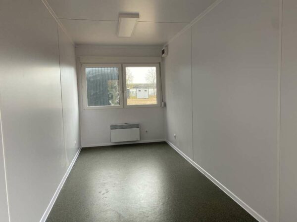 em PVC – entrada 380 V, 32 a, 5 pólos; 1 caixa de fusíveis e distribuidor, 2 lâmpadas LED, 1 interruptor, soquetes duplos de 230v, janelas e proteção solar – 1 janela dupla / 200cm x 120cm e persianas de pvc 1 porta – 200cm x 90cm