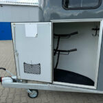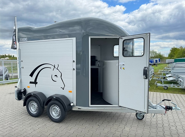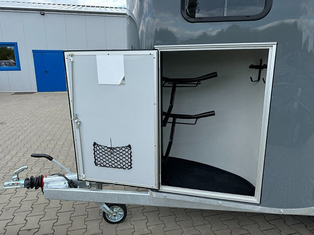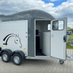 O trailer Cheval Liberté Origins + Sellerie foi projetado para o transporte seguro de dois cavalos, oferecendo um espaço prático para estofados. Robusto, elegante e confortável, atende aos requisitos de profissionais e entusiastas no mundo equestre.