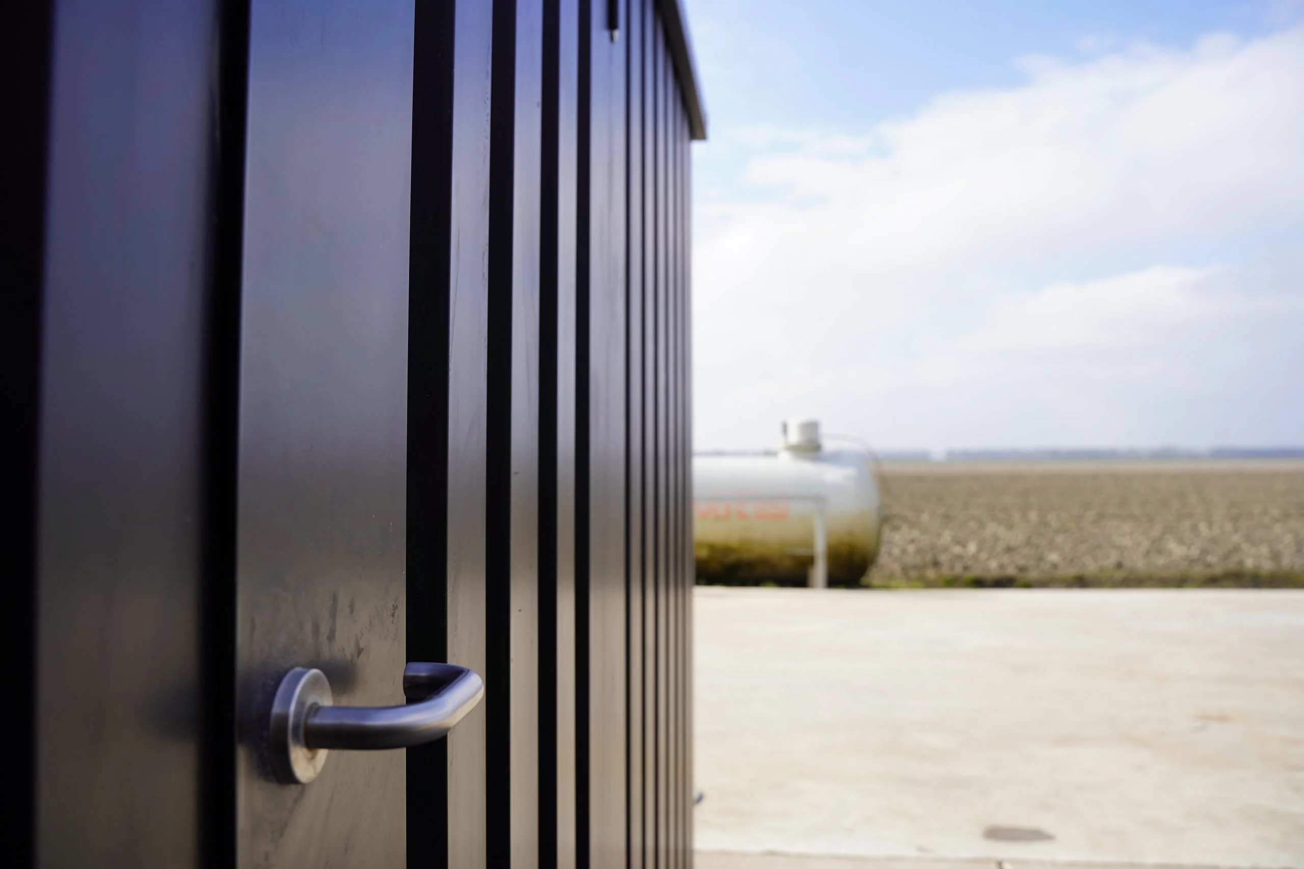 Com porta dupla no lado de 5 metros (lado grande) – todas as cores RAL disponíveis