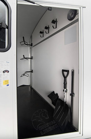 O trailer ilustre de Liberté, com estofados, é distinguido por seu grande volume interior, sua robustez e seu equipamento padrão projetado para o bem-estar dos cavalos e a praticidade do transporte. Ideal para longas distâncias, fornece segurança máxima e conforto ideal, graças ao seu design alto e acabamentos limpos.