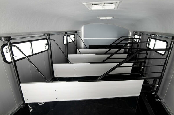 Separações de interiores ajustáveis para se adaptar ao tamanho dos cavalos