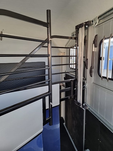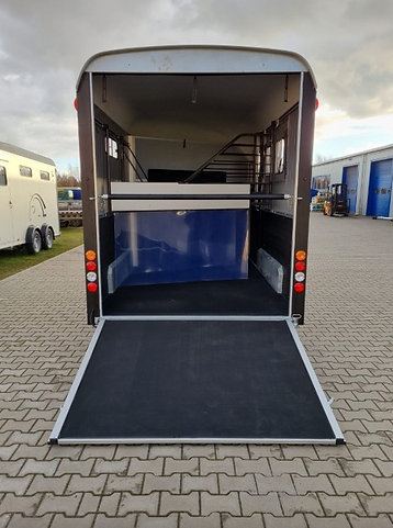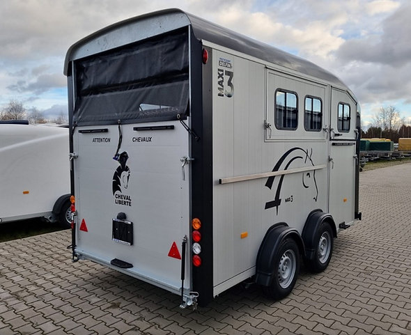 O trailer Cheval Liberté Maxi 3 com rampa lateral e estofamento é um modelo alto, dedicado ao transporte de três cavalos. Graças ao seu generoso espaço interior e seu equipamento padrão completo, ele oferece segurança, conforto e praticidade, seja para viagens ocasionais ou regulares.